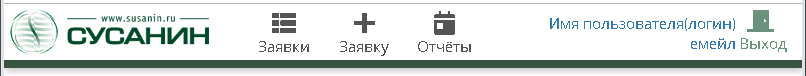 Верхнее меню различается для пользователей компании Сусанин, авторизированных пользователей клиентов и гостей.