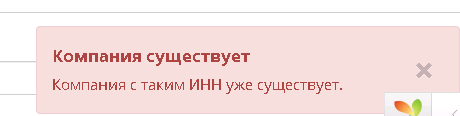 При создании компании происходит проверка ИНН и система сообщает есть ли совпадения или несоответствие правилам: