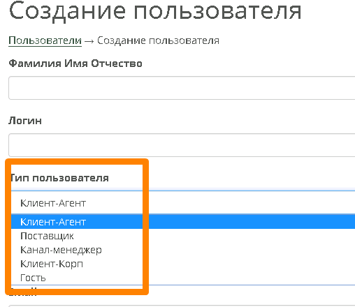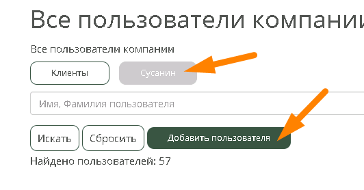 Создание пользователя возможно как пользователя Клиента, так и пользователя компании Сусанин.