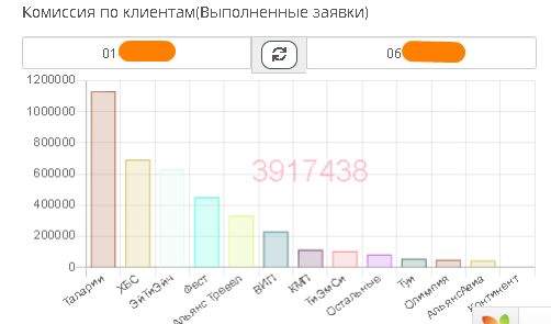 Этот отчёт доступен только начальникам. Он позволяет в столбиковой диаграмме отображать комиссию, которую заработали клиенты за указанный период.