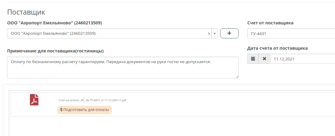 Кликнув на кнопку «Подготовить для оплаты» любой менеджер(а не только владелец заявки) может заполнить заявку на оплату: