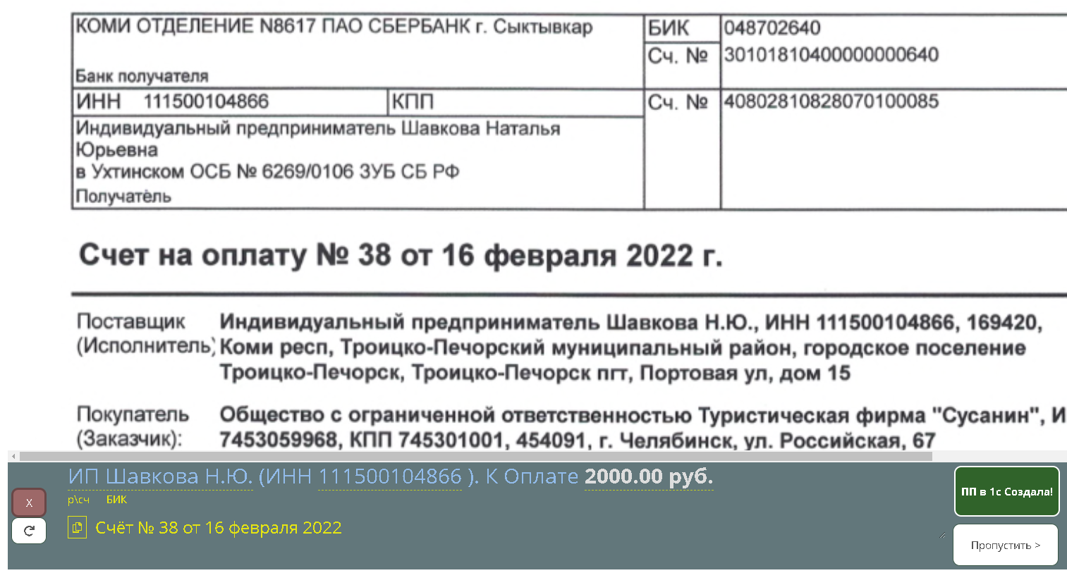 - После того как платежка в 1С набита - нажать кнопку «ПП в 1С создано»!