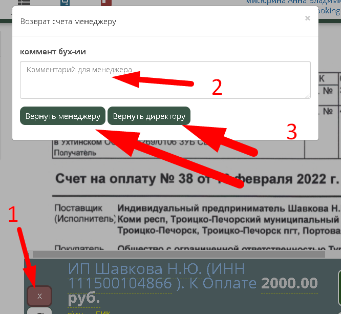 Если счёт с ошибкой или есть какие-то другие проблемы, то всегда можно вернуть счёт менеджеру. После отправки счёта менеджеру система покажет следующий счёт.